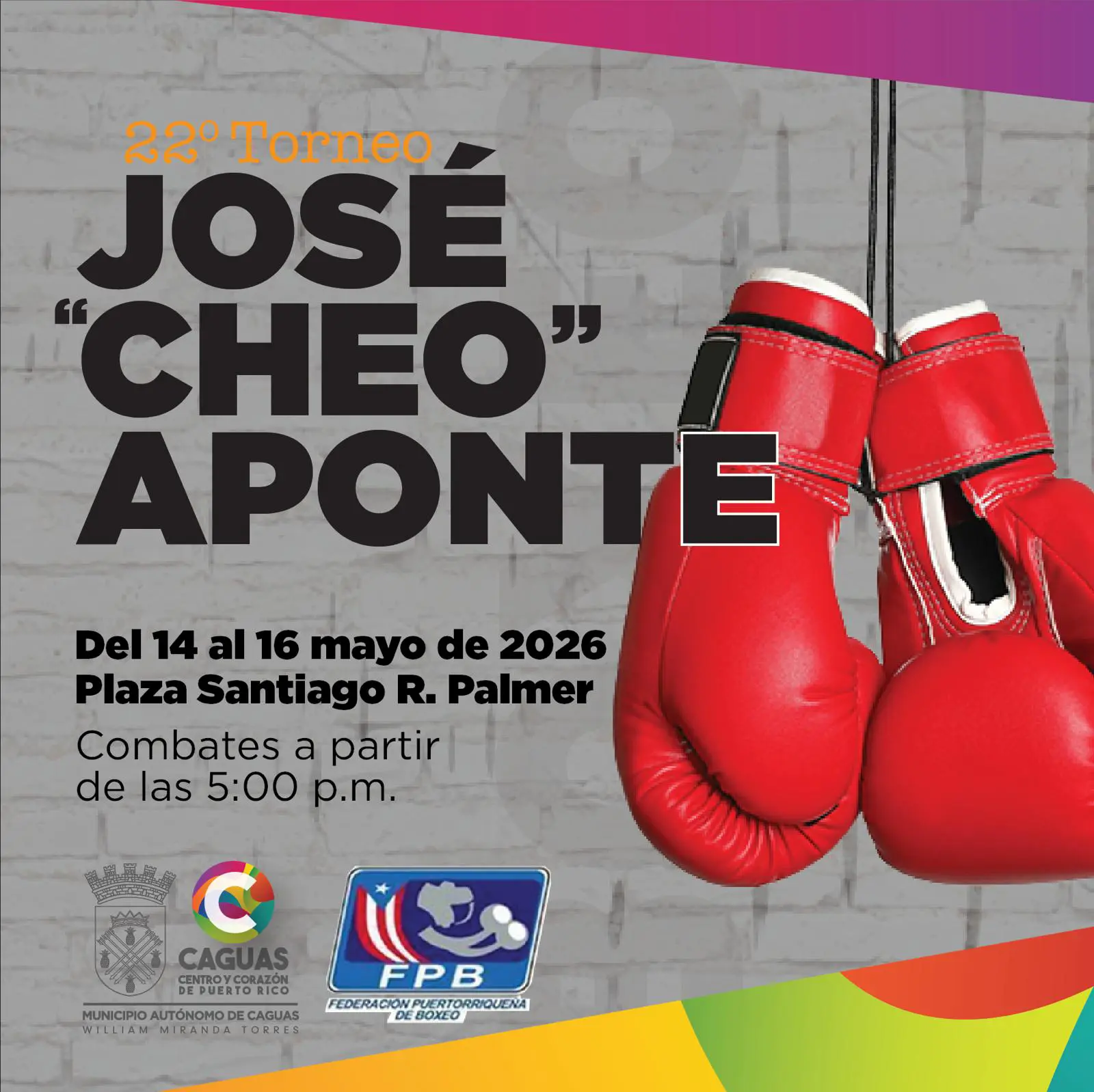 El Municipio Autónomo de Caguas invita a la ciudadanía a disfrutar del 22.º Torneo de Boxeo José “Cheo” Aponte, un evento deportivo que reúne el talento del boxeo en un ambiente familiar y competitivo.