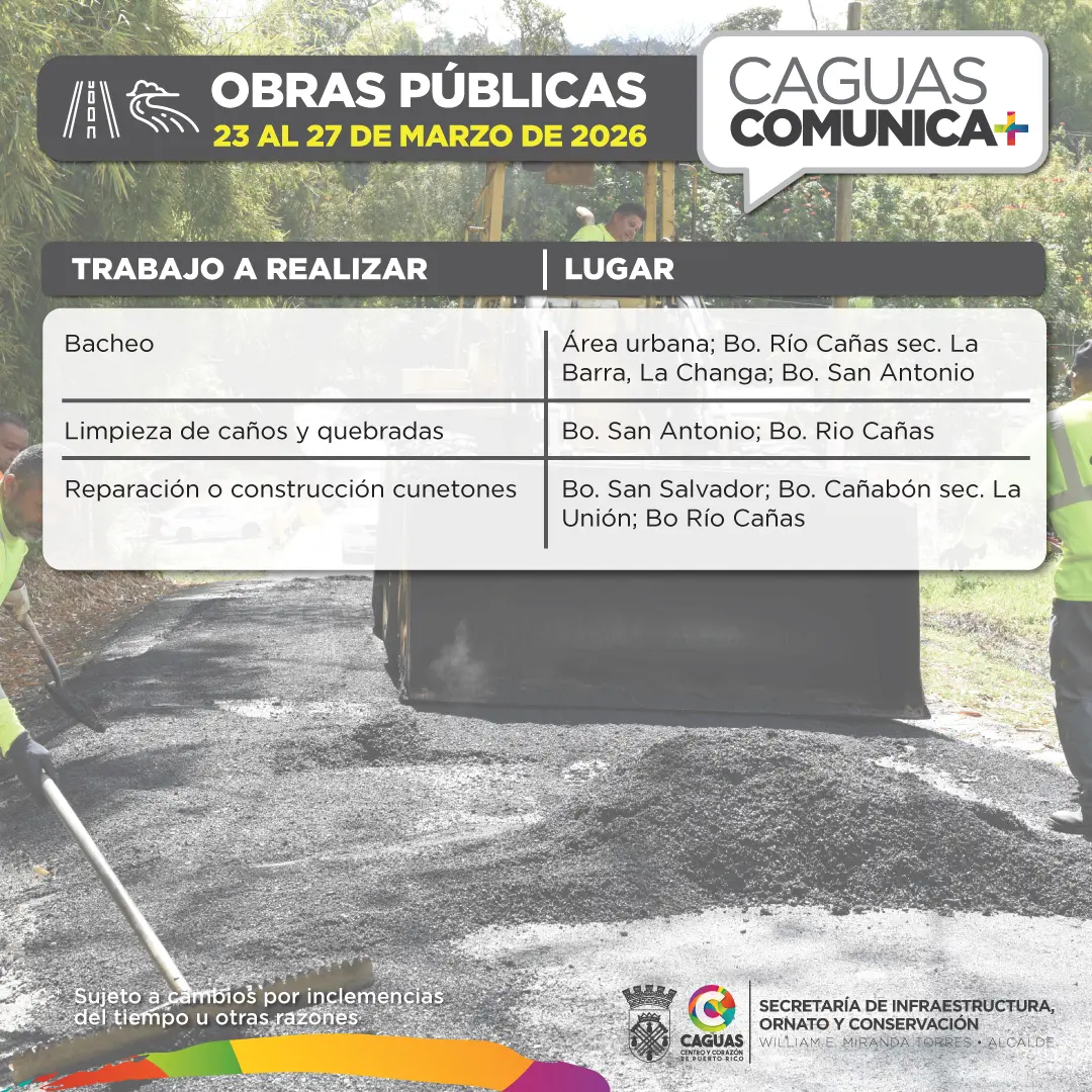 Conoce las labores programadas para esta semana del 23 al 27 de marzo de 2026, y sé parte del esfuerzo por una mejor ciudad.