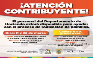 El Municipio Autónomo de Caguas, a través del Departamento de Hacienda, informa que su personal estará disponible para brindar orientación y asistencia en el proceso de radicación de planillas ✅. 📅 Fechas de servicio en la Alcaldía 🗓 11 y 25 de marzo [...]