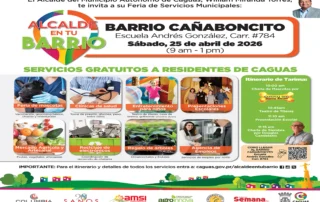 El Municipio Autónomo de Caguas invita a todos los residentes a disfrutar de una gran Feria de Servicios Municipales el sábado, 25 de abril de 2026, en la Escuela Andrés González, Carr. #784, de 9:00 am a 1:00 pm. 🙌 📍 Para llegar: https://maps.app.goo.gl/p9ucRyCYpP8pkzLm9. 💚 SERVICIOS [...]