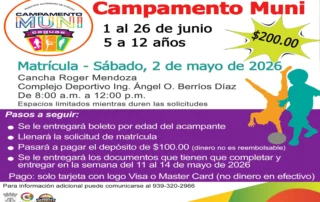 ¡Separa la fecha! El Campamento Muni abre matrícula para el público general. El programa se realizará del 1 al 26 de junio para edades de 5 a 12 años, con un costo de $200. La matrícula será el sábado 2 de mayo, de 8:00 a.m. [...]