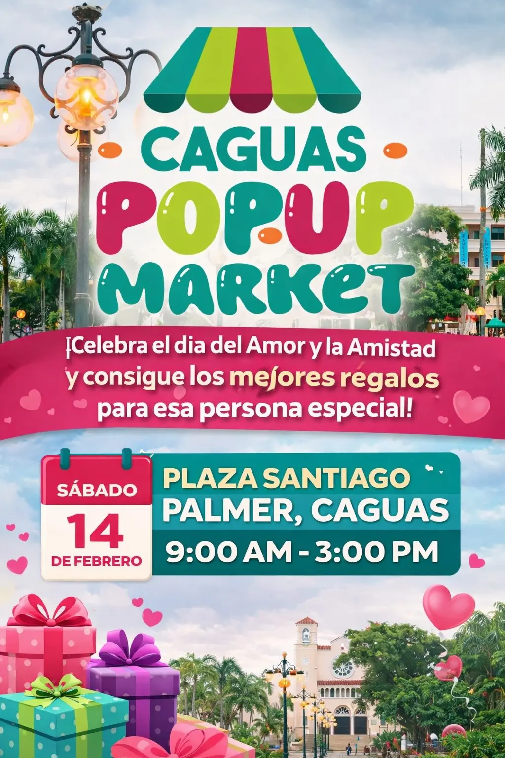 Este sábado, 14 de febrero, vive una experiencia diferente y especial en el Caguas Pop‑Up Market, el lugar ideal para encontrar ese regalo perfecto para sorprender a esa persona especial 💝🎁