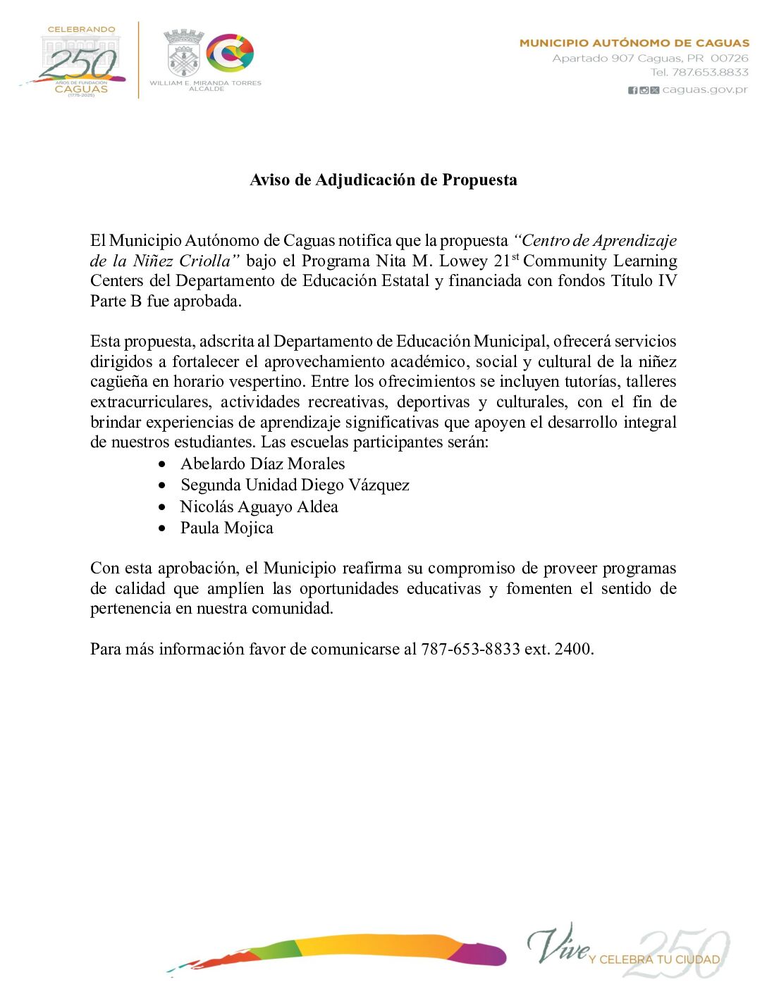 - Ser residentes bonafides del Municipio Autónomo de Caguas.