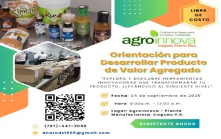 El Municipio Autónomo de Caguas invita a la comunidad emprendedora y agroindustrial a participar en la orientación gratuita organizada por AgroInnova, titulada: "Orientación para Desarrollar Producto de Valor Agregado" [...]