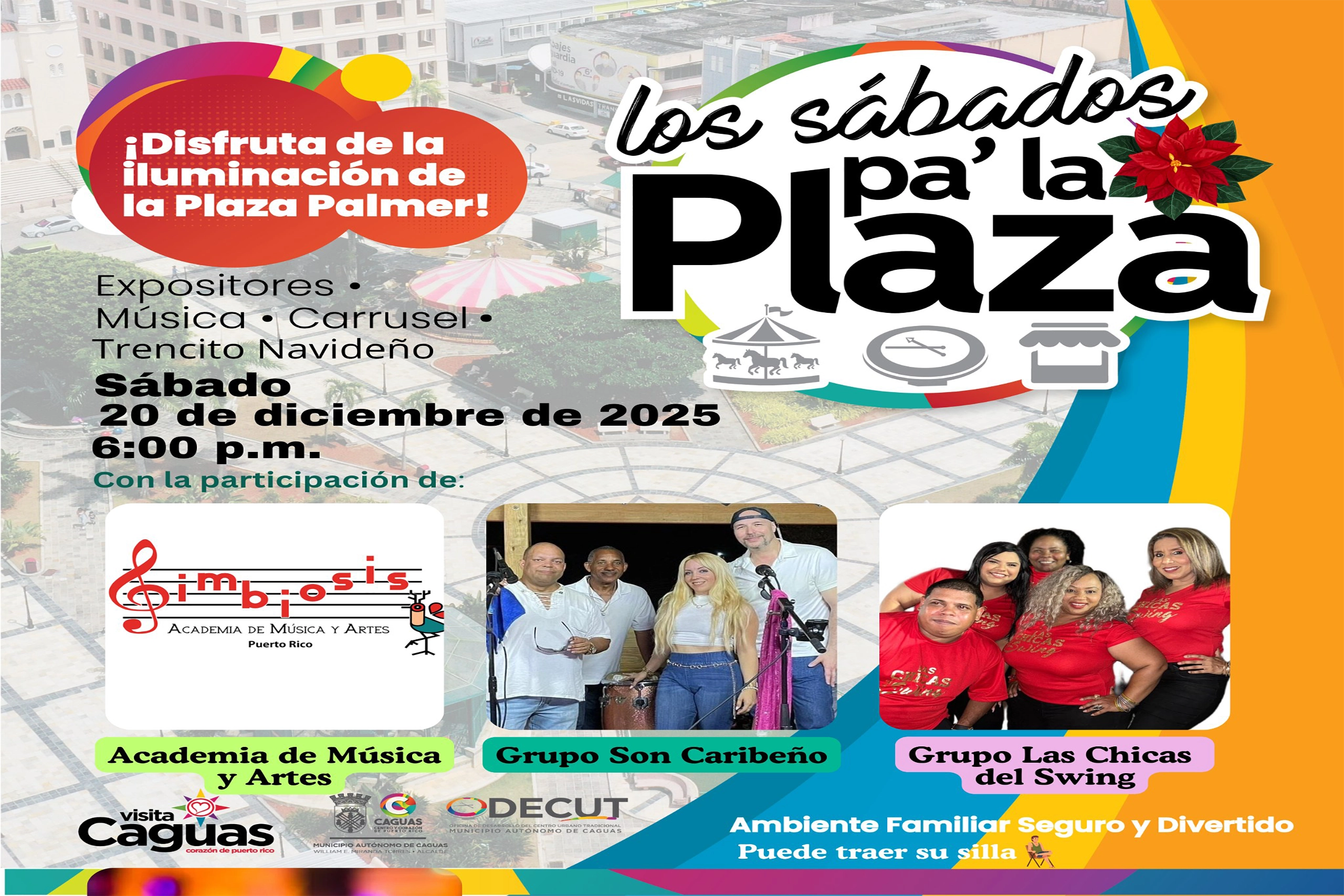 ¡Este sábado la Plaza Palmer se llena de vida! 🎄✨Disfruta de la iluminación especial de la Plaza Palmer y vive una experiencia única con 🎶música, 🛍️expositores, 🎠carrusel y el 🚂 Trencito Navideño para que vivas la magia de la temporada! 📅 Fecha: Sábado, 20 de diciembre de 2025 🕕 Hora: 6:00 p.m. 📍 Lugar: Plaza Palmer, Caguas Participación especial: Academia de Música y Artes Grupo Son Caribeño Grupo Las Chicas [...]