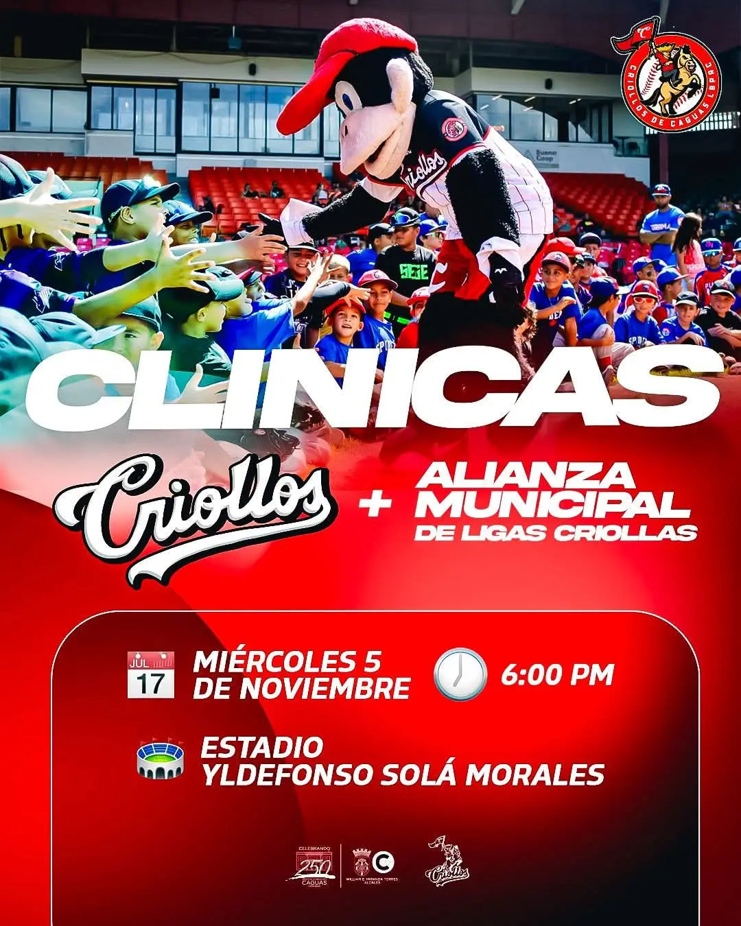 El Municipio Autónomo de Caguas, en alianza con las Ligas Criollas, te invita a disfrutar de una experiencia única para aprender y compartir en el mundo del béisbol.