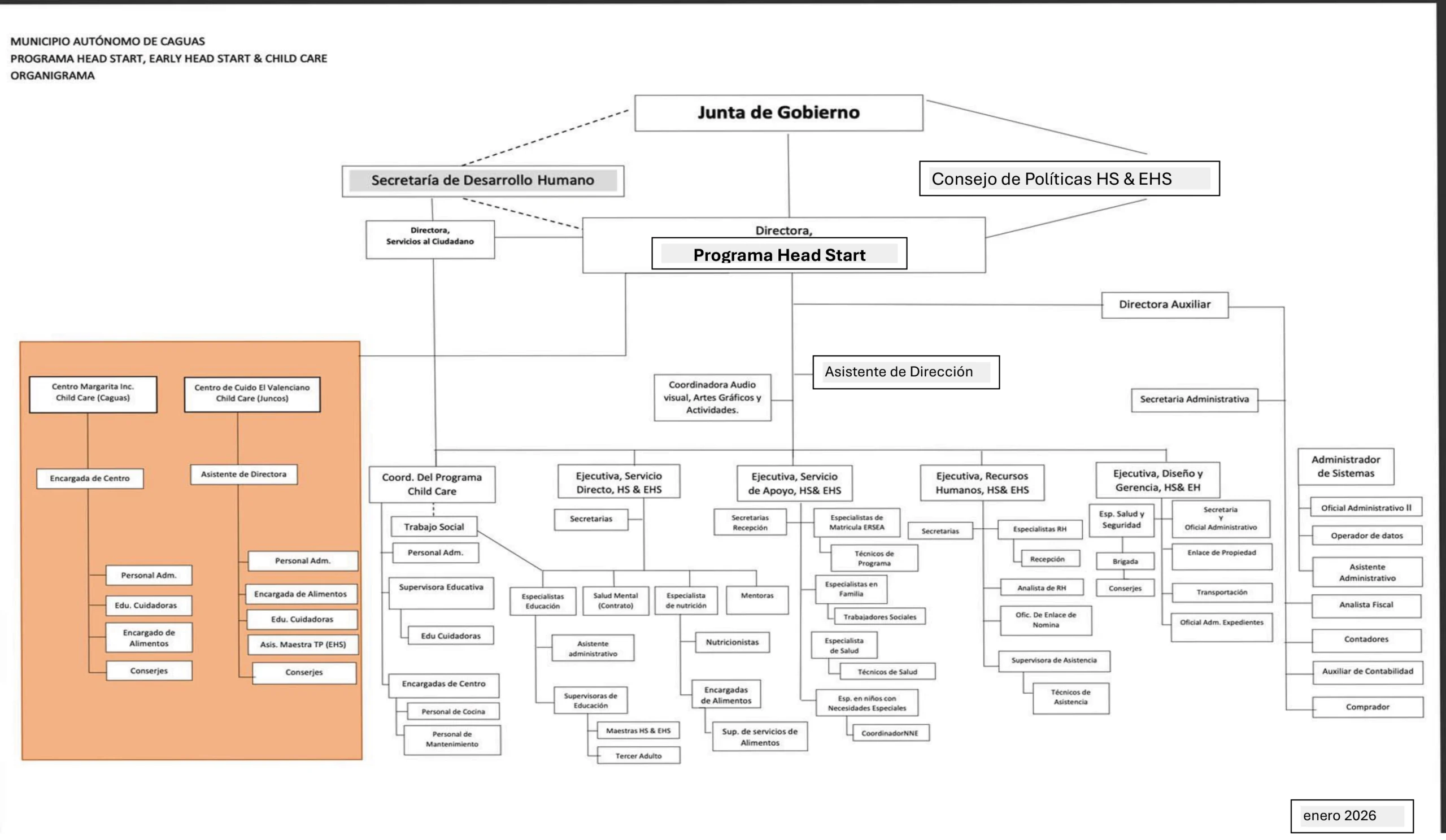 El Programa es responsable de la administración de los Centros Head Start & Early Head Start del Municipio Autónomo de Caguas. Ofrece servicios en los municipios de Caguas, Aguas Buenas, Gurabo y Juncos. Atiende una matrícula de 1,327 niños entre las edades de cero a cuatro años y embarazadas.