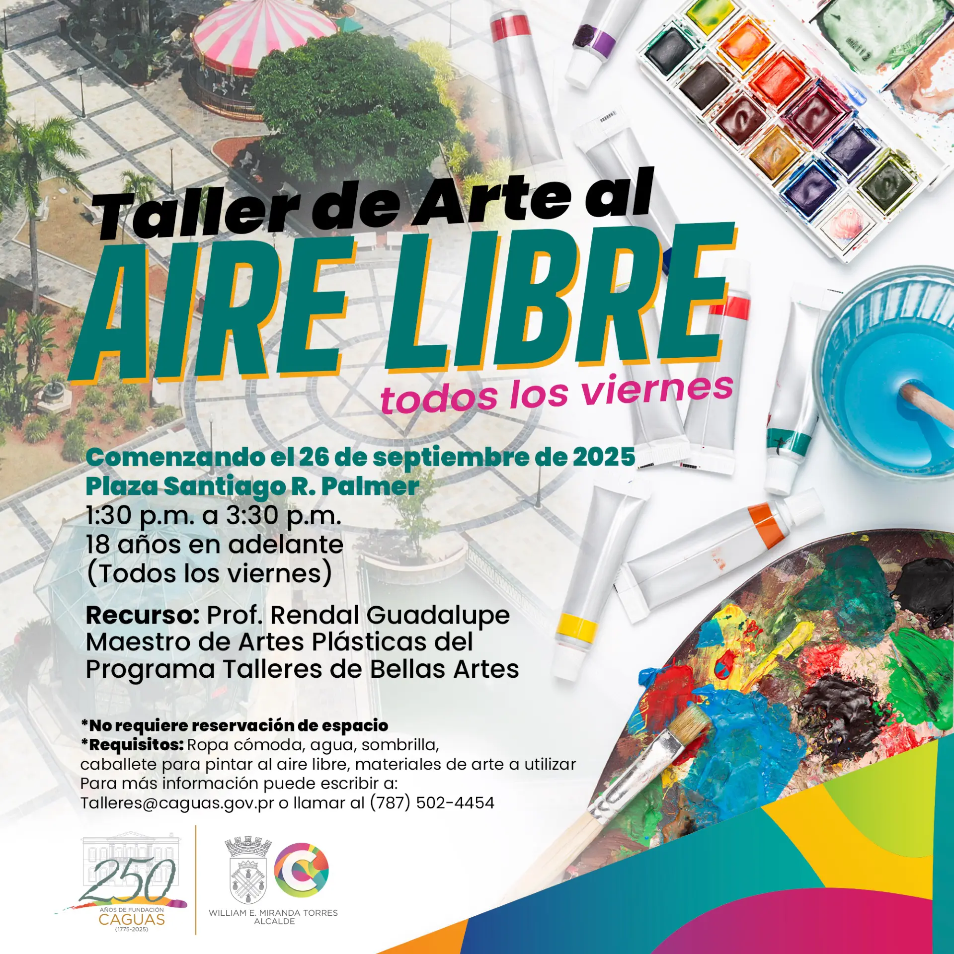 El Municipio Autónomo de Caguas te invita a participar en nuestro Taller de Arte al Aire Libre, una experiencia única para conectar con el arte y la naturaleza.